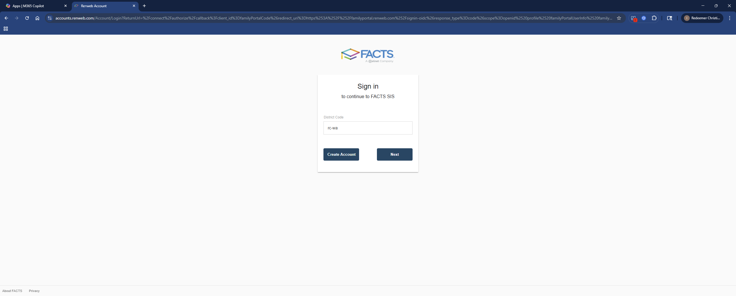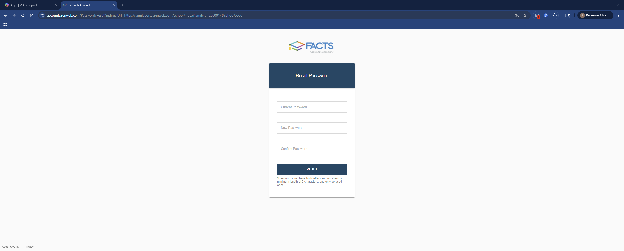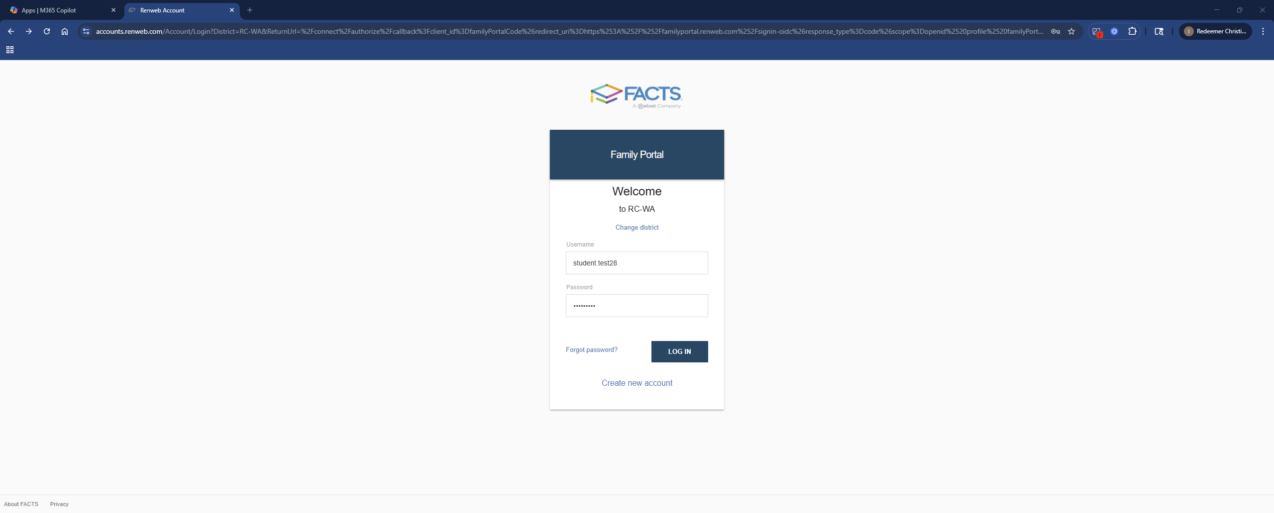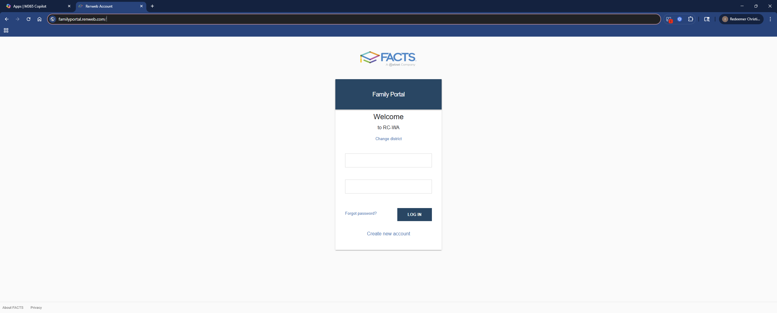 - Login to FACTS by going to https://familyportal.renweb.com/.