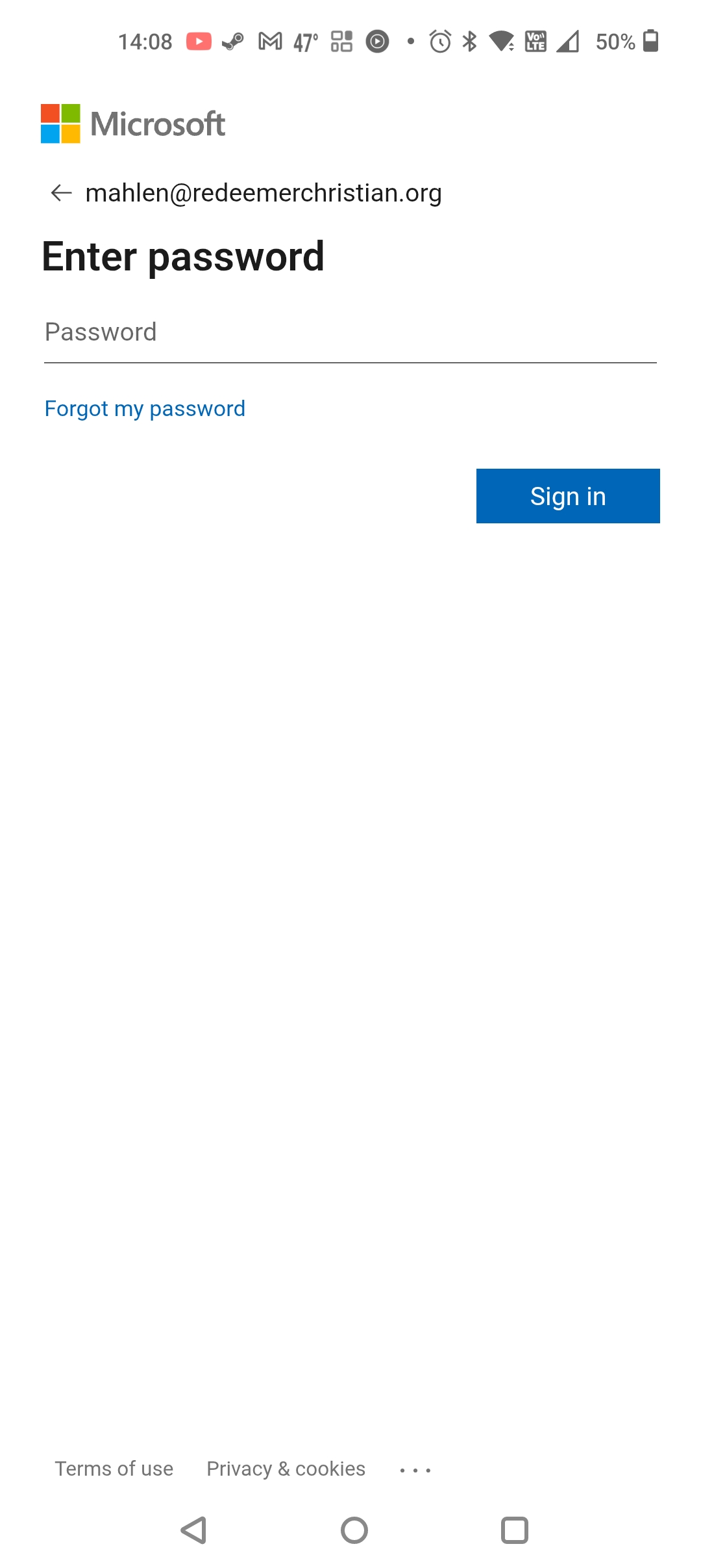 - Enter your password and select Sign in.